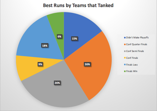 The ultimate goal of any tanking or rebuilding team is to win the NBA championship. The teams should have their core players in place with several quality role players and a good coaching staff. But this is much harder than it sounds. Only a few teams that tank ever even reach the finals. While tanking teams expect the payoff of several years of losing to be an eventual title, few teams actually achieve this very lofty goal.