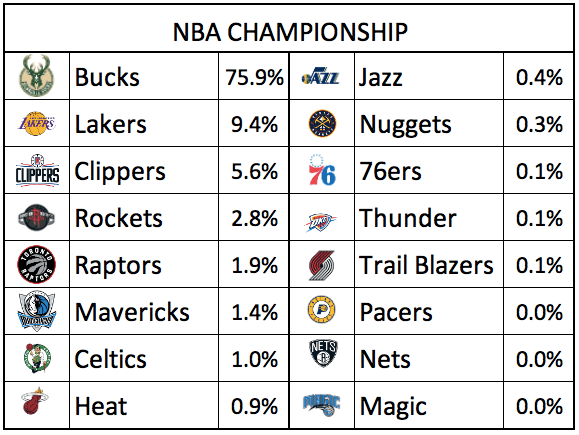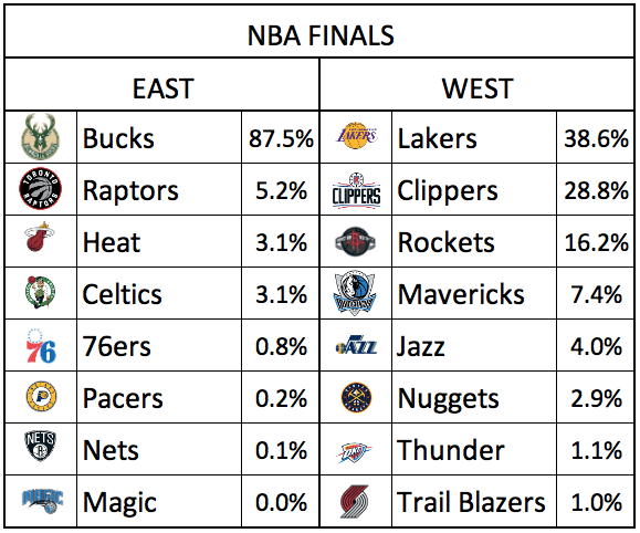 In respect to title odds, the Bucks seem to be the heavy favorites. While they remain the betting favorites, the Bucks have not been discussed as favorites as often as the Clippers or the Lakers. Most expect the Clippers or Lakers to beat the Bucks in a potential finals series since the Lakers and Clippers have established playoff performers in LeBron James and Kawhi Leonard, whereas the Bucks have not had as much playoff success. Recency bias is another major reason the Bucks are not being talked about as much, since the Bucks did not do anything significant in the bubble as they rested their players often. Despite the recency bias and lack of previous playoff success, the Bucks should still be considered the favorites of this year’s NBA playoffs.