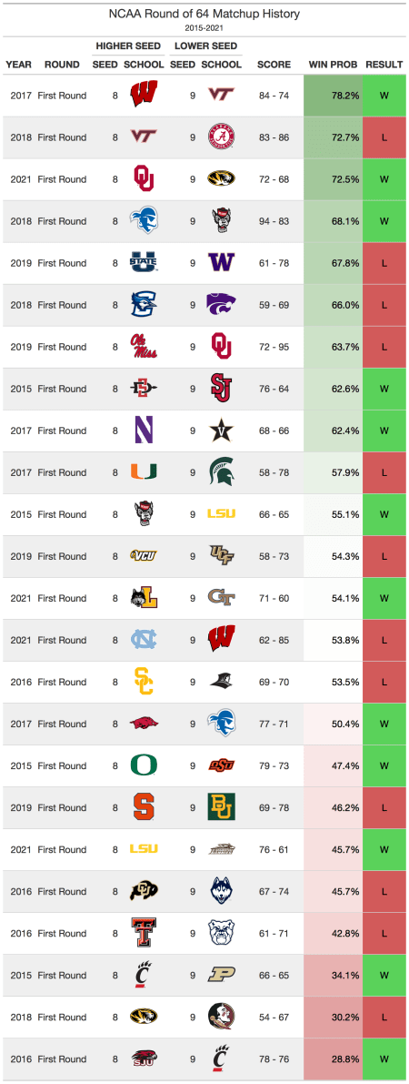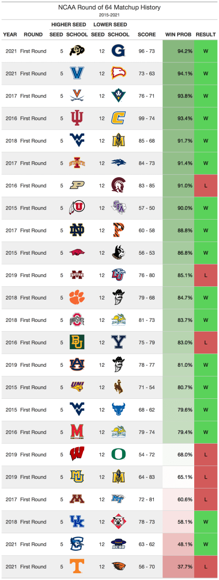 5 vs 12 matchups