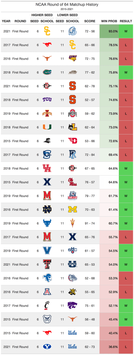 6 vs 11 matchups
