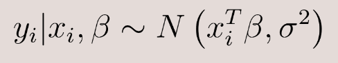 In this model, each prediction (yi) is assumed to follow a normal distribution, where the mean is a linear combination of the features (xi) and their corresponding coefficient (